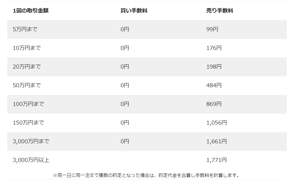 LINE証券で現物株取引をする場合の手数料体系は以下の通りです。